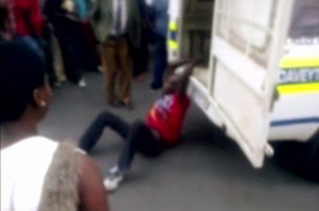 Um cinegrafista amador flagrou o momento em que o motorista de táxi de 27 anos foi algemado a uma viatura e arrastado pelas ruas da periferia de Daveyton.